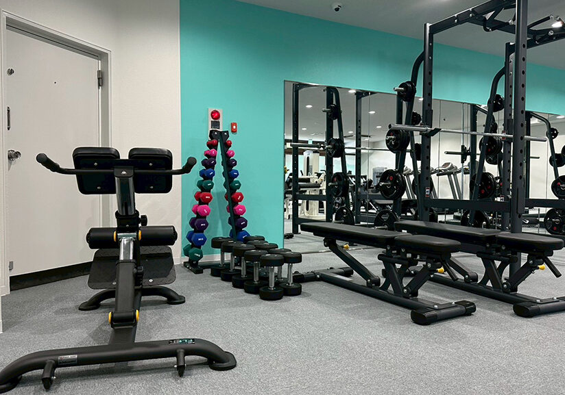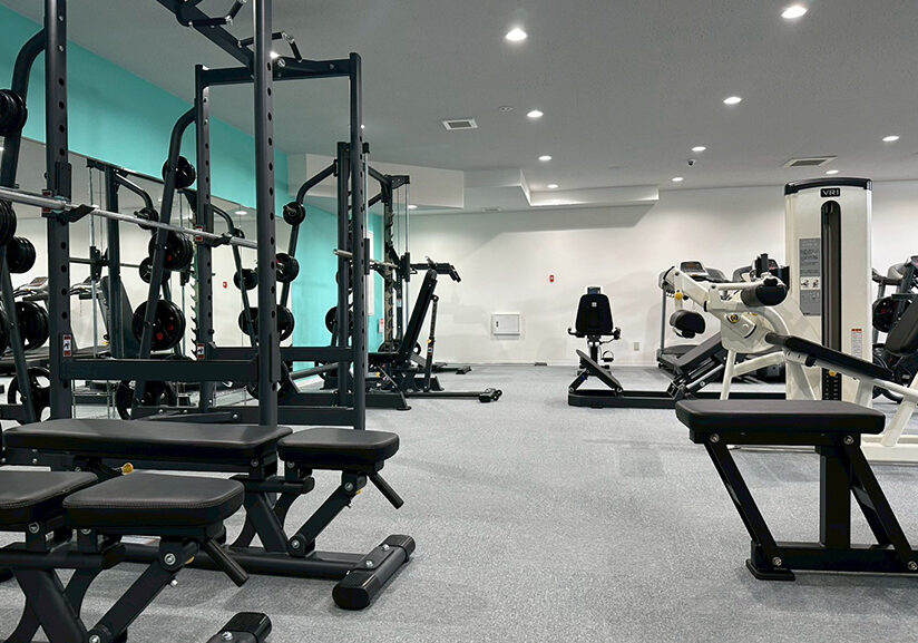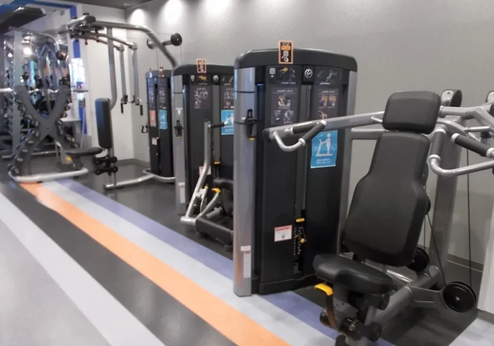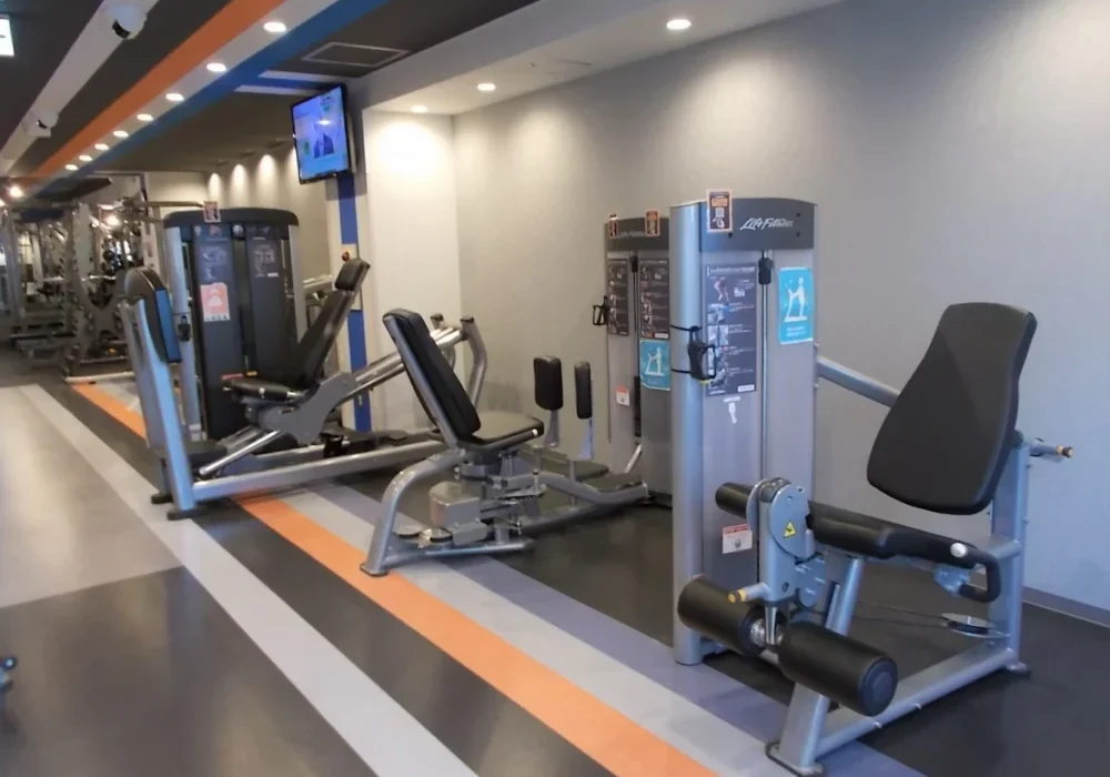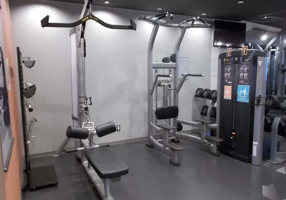 ジム全体のスペースはそれほど広くありませんが、基本的なトレーニングマシンは一通り揃っており、バランスよく全身を鍛えることができます。