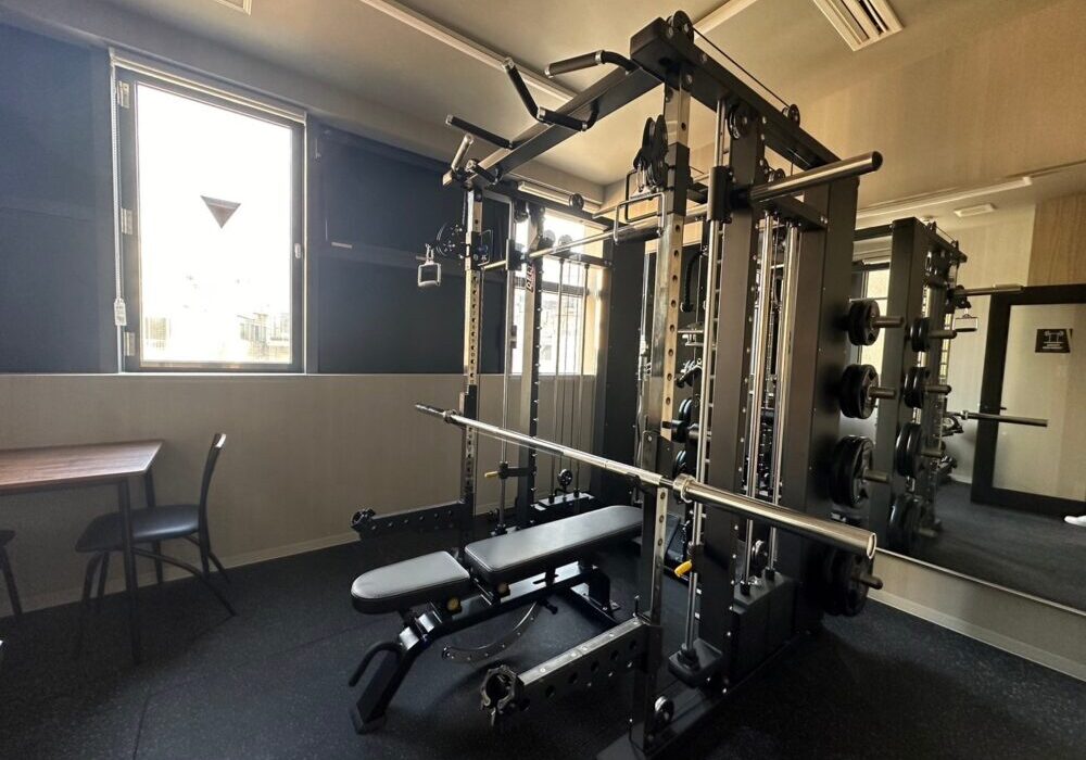 筋トレマシンは全身をバランスよく鍛えられるものが一通り揃っており、フリーウエイトスペースも確保されています。