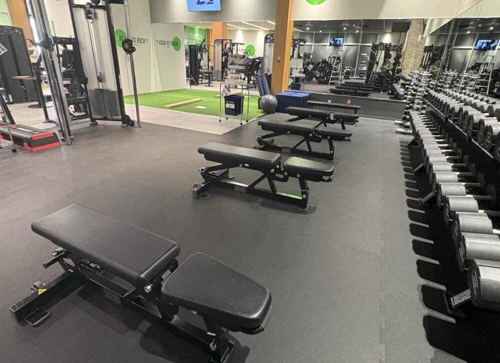フリーウエイト設備も優秀で、ダンベルは最大50kgまで対応。