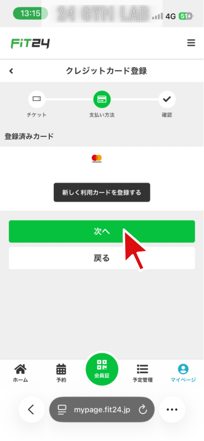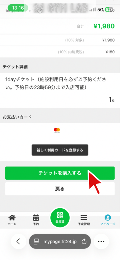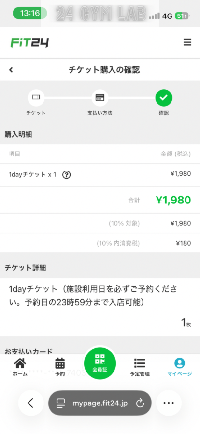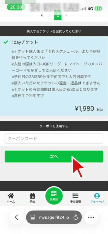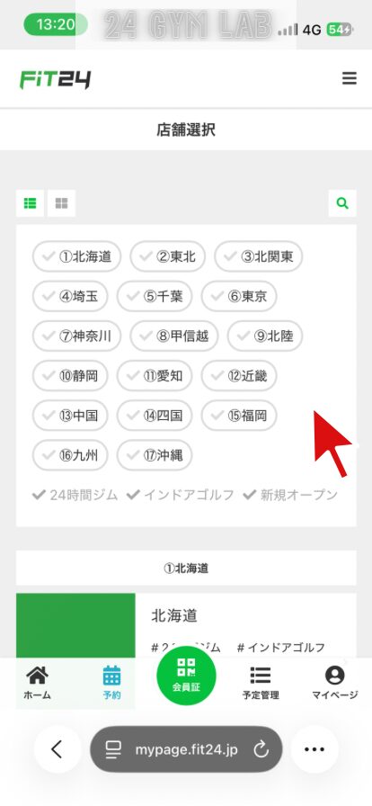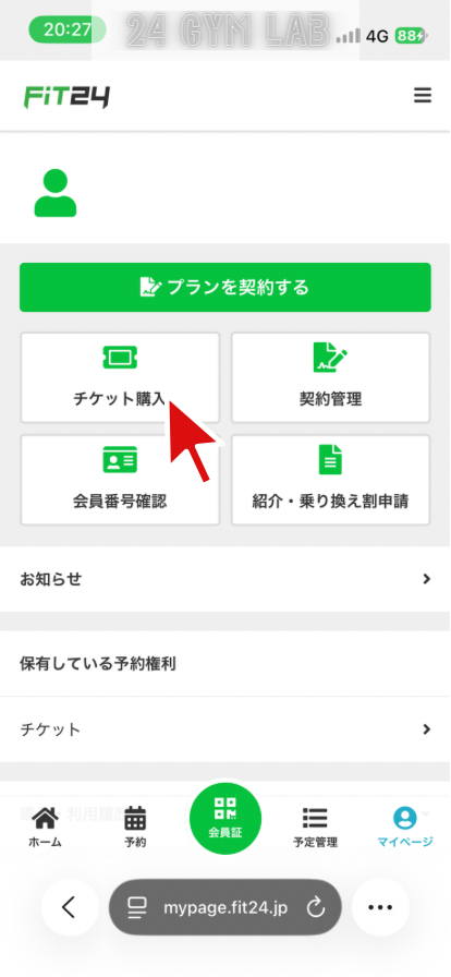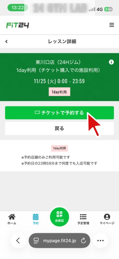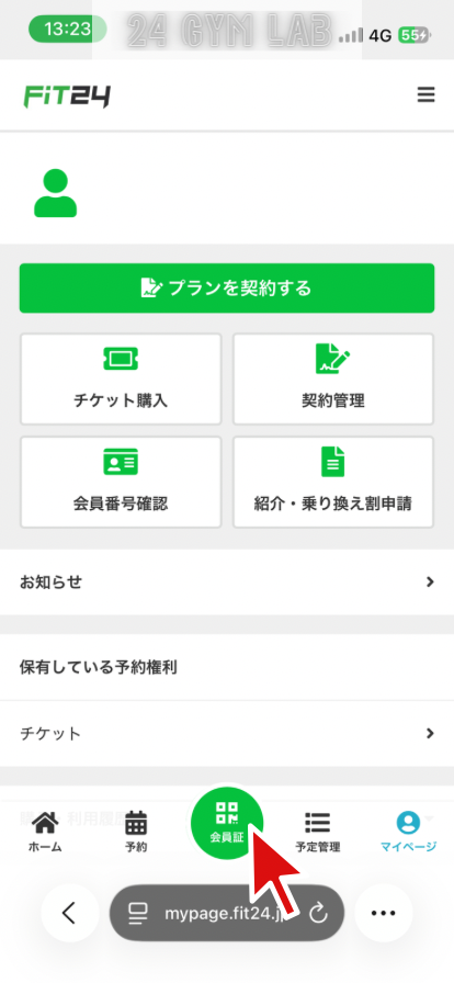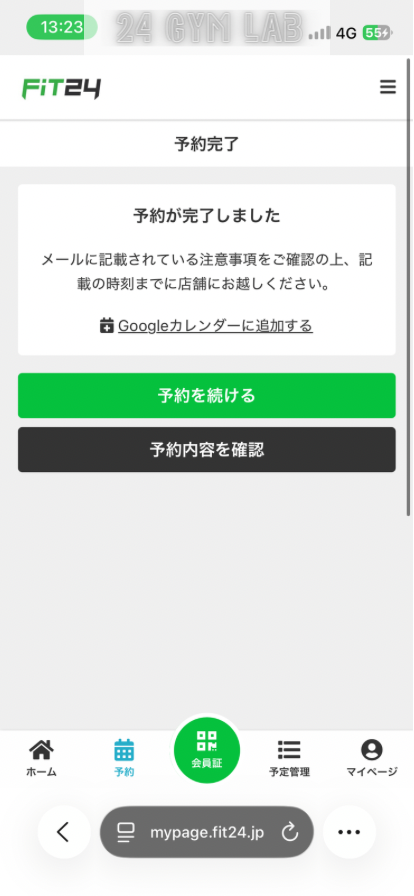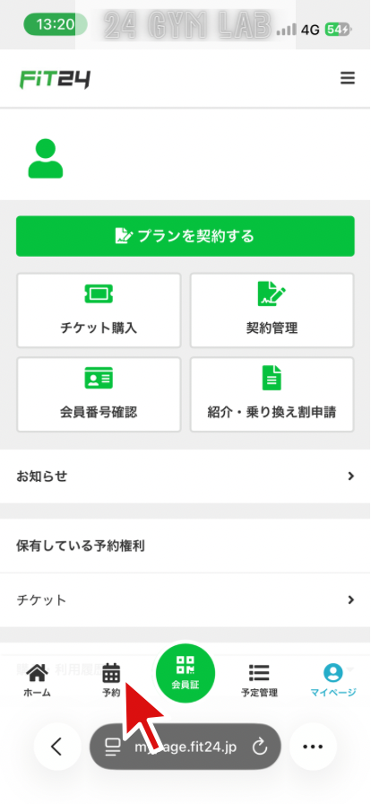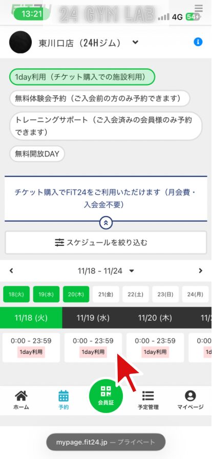 FiT24でビジター利用するには、マイページから事前に予約する必要があります。