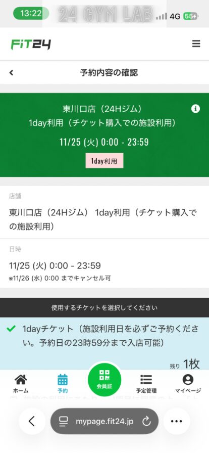 FiT24のビジター利用では、予約したのに入館しなかった場合でもチケットが自動的に消費される点に注意が必要です。