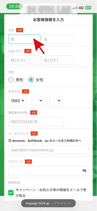 公式HPから上記画像のページへ飛ぶため、お客様情報を入力の上、会員登録を完了します。