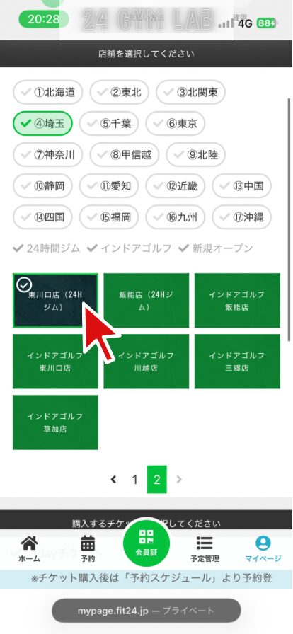 自分がビジター利用したい店舗を選択します。