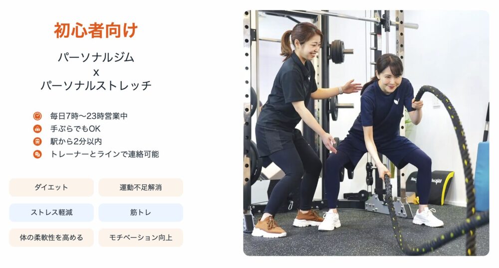 ハネジムは、筋トレだけでなくパーソナルストレッチも受けられる点が特徴です。