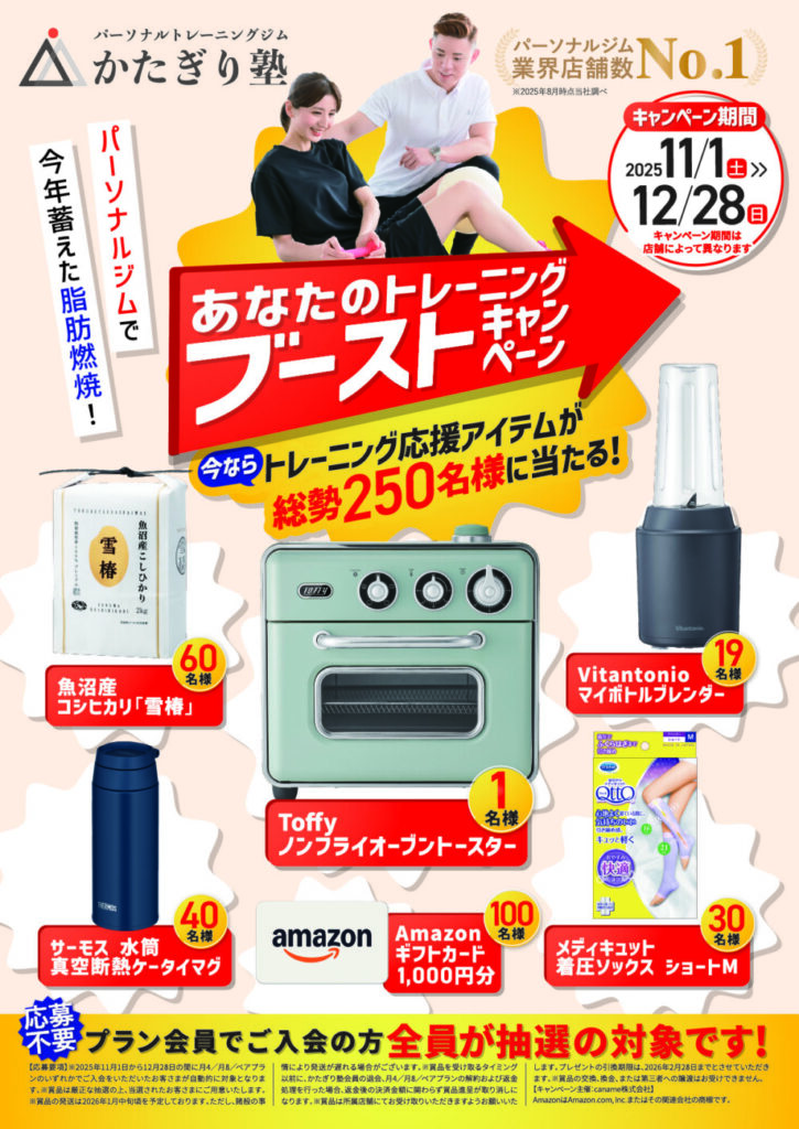 かたぎり塾は全国に300店舗以上展開している大手パーソナルジムです。